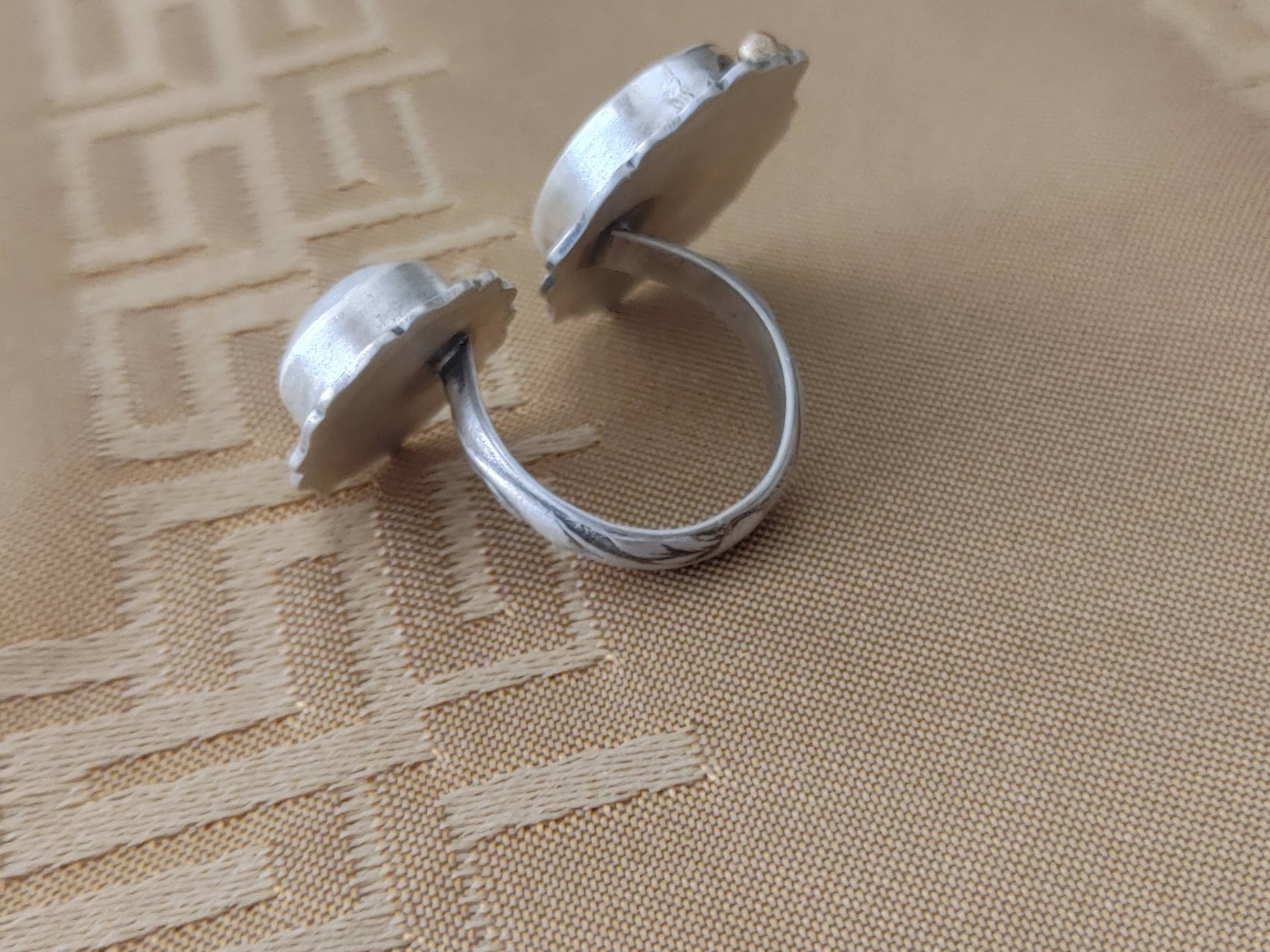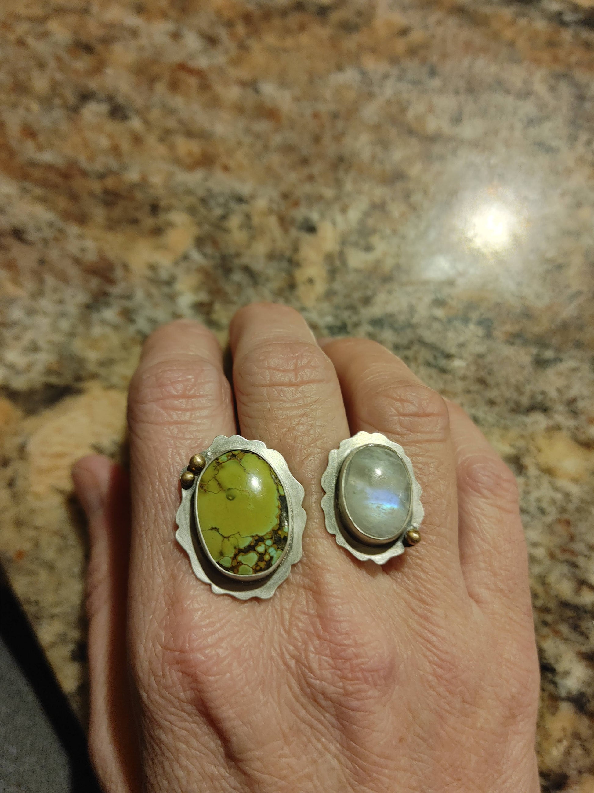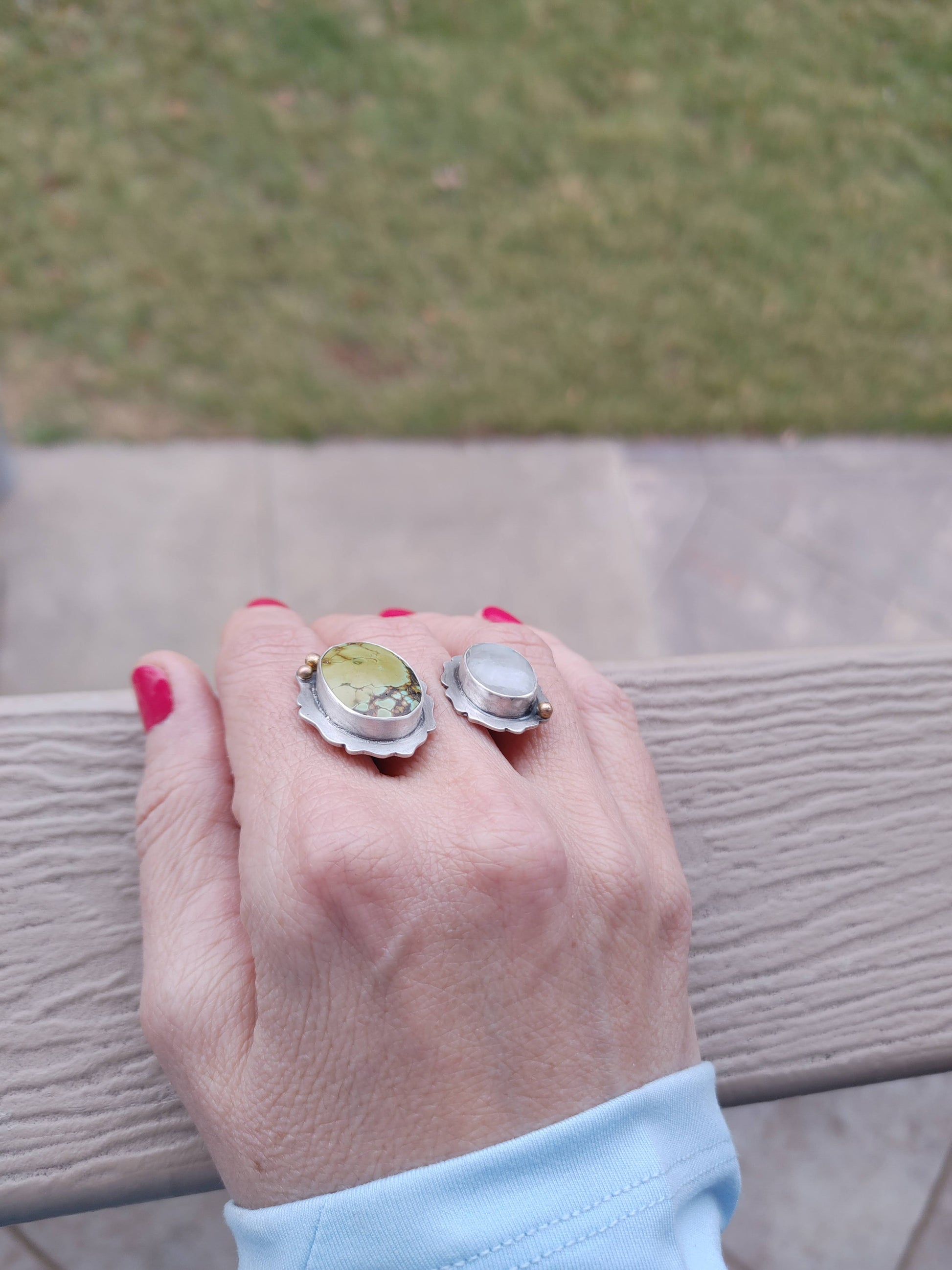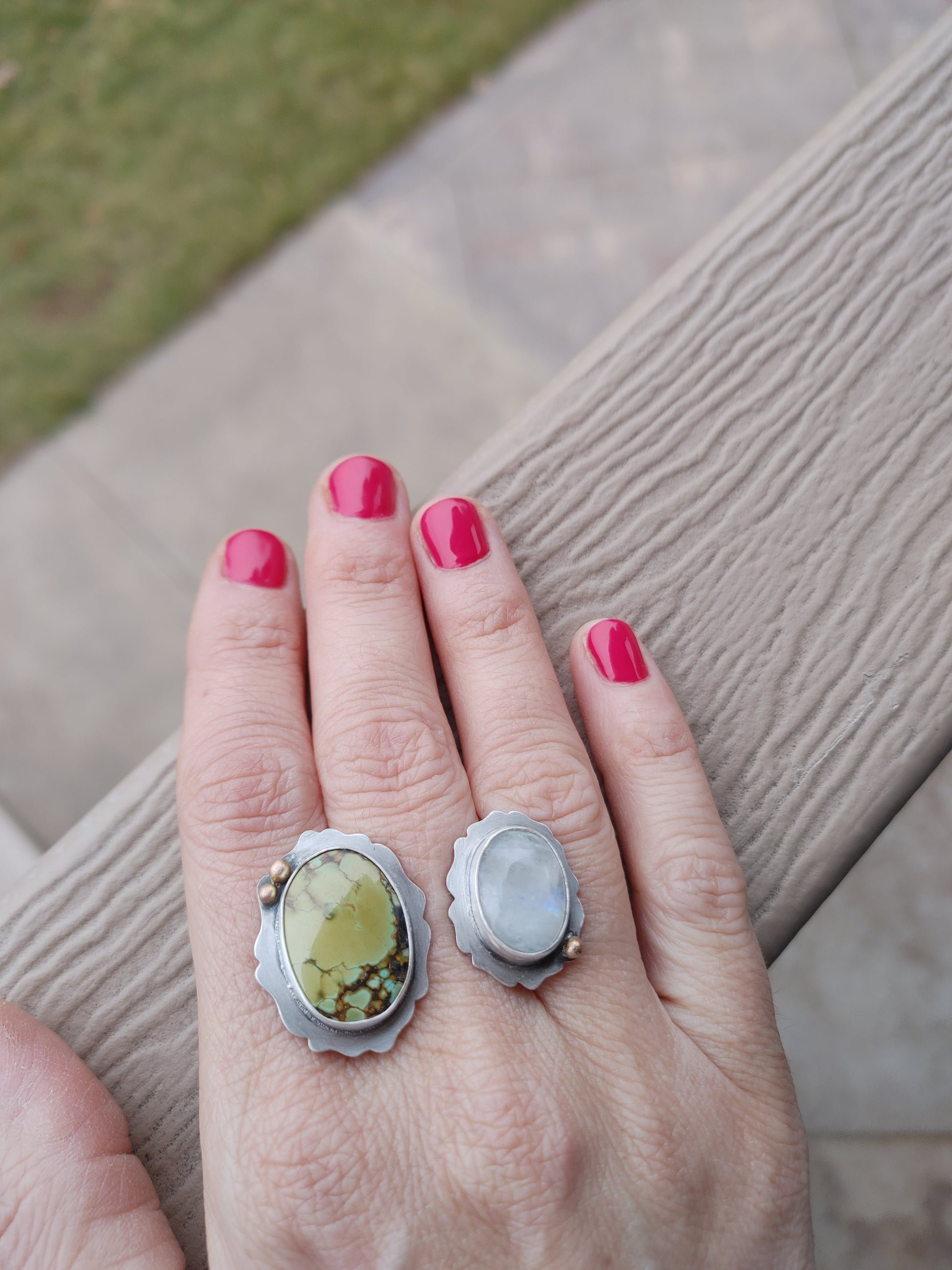Handmade Turquoise Moonstone Double Ring 18K Gold Sterling Silver