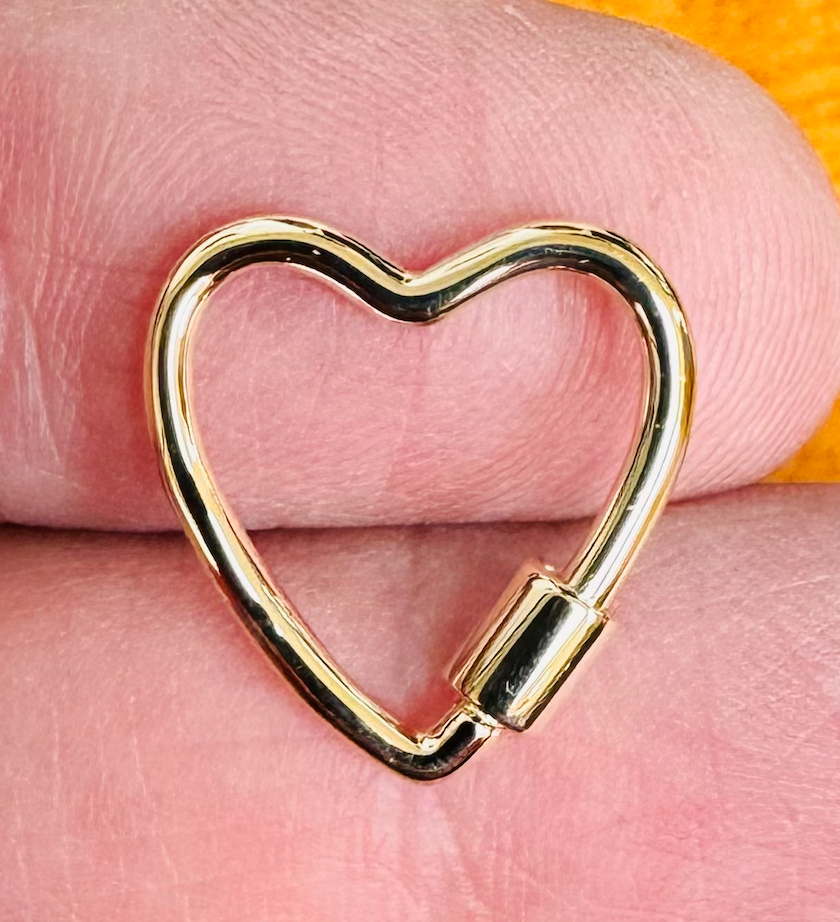 10K Gold Heart Charm Bail Clasp Carabiner For Necklaces Paperclip Chains