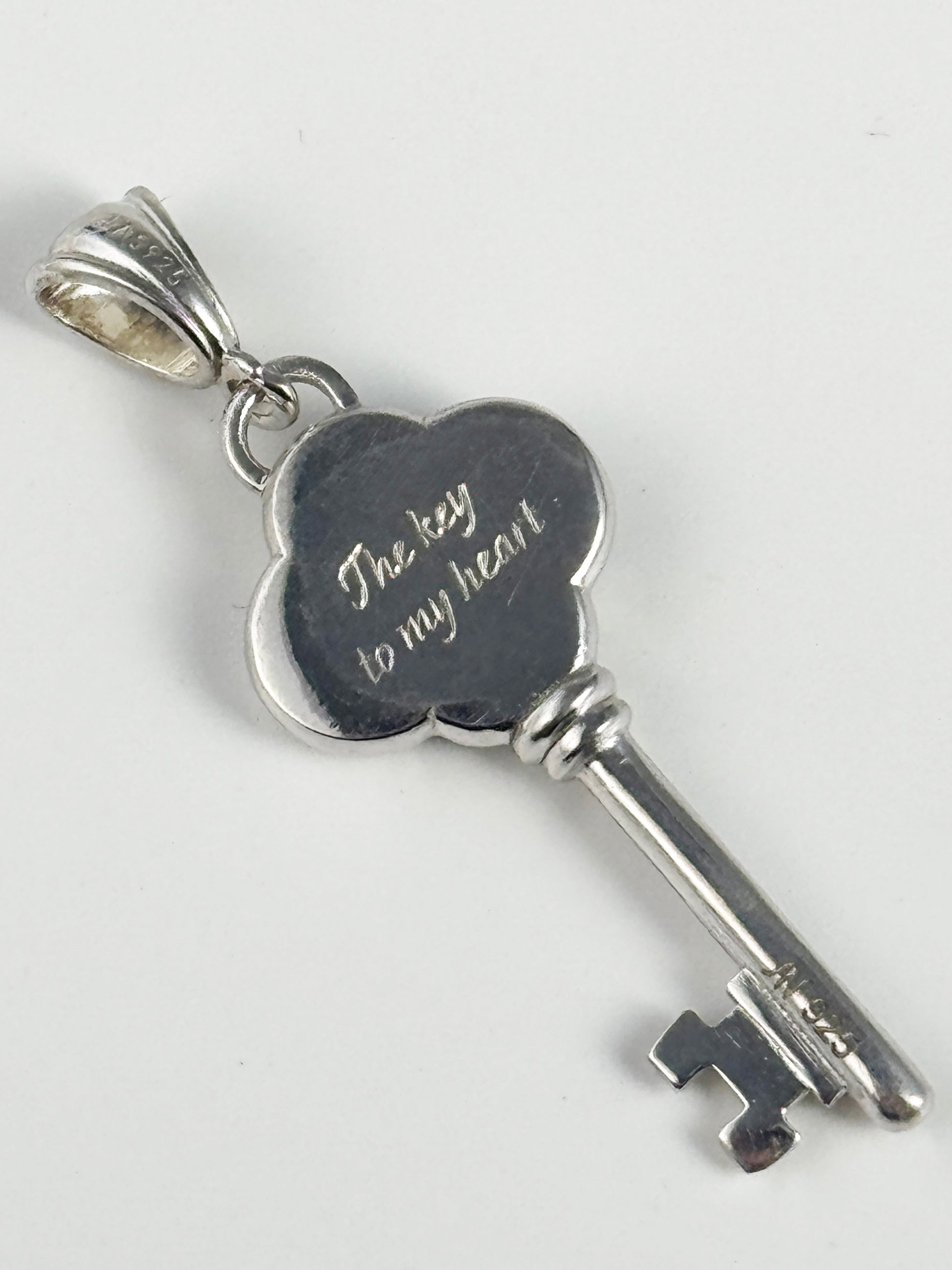Handmade by me in my beautiful Kansas City Studio, a key pendant with real glass kiln fired enamel in dark blue color. The stone is 4mm lab grown diamond. If you need a real diamond, I will create a custom listing for you. Back side I hand engraved with word "Key from my heart". This is also can be customized to any words.