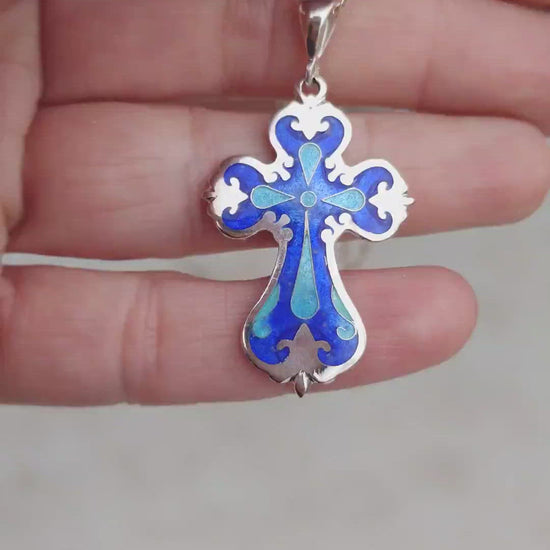 Handmade Enamel Cloisonne Silver Cross Champleve