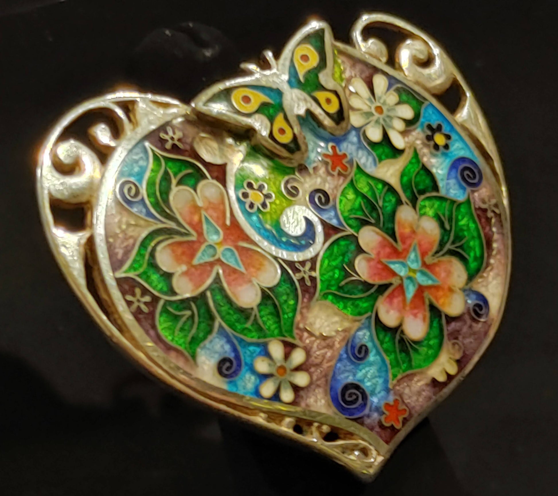 Cloisonne is ancient art, that dates centuries back in history. Tiny silver wires were bent and twisted according the design. Then small sections were filled with colorful enamels and fired in special kiln at very high temperature several times until desired height of enamel is achieved. After all it has to be grinded and polished for the final smooth and shiny look. Cloisonne enamel is very time intensive process, but end result is always enjoyable. It's the art that you can wear.
